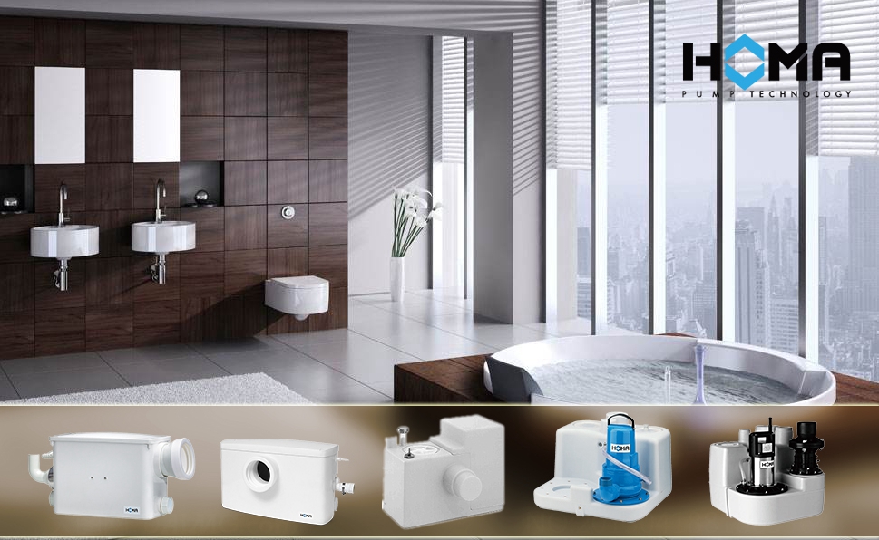 生活废水主要成份是含有粪便的污水,这种情况下就需要安装污水提升器,主要用于收集和泵送含有粪便和厕纸的污水。这类污水提升器是目前污水提升器中的主流产品,可以泵送的介质的范围也比较广,被广泛地使用于住宅、商场、广场、地铁、医院等场所的污水泵送系统中,彻底解决了地下空间的污水的收集和排放的难题。这类污水提升器的形式种类比较多,就德国HOMA的产品而言,主要有以下几个种类的污水提升器比较适合家庭环境中使用。