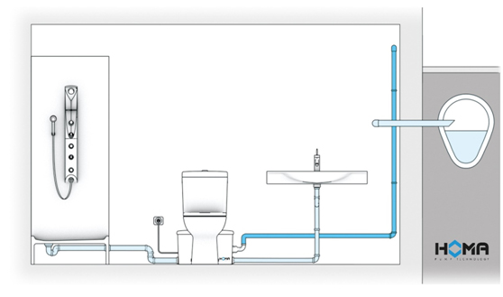 HOMA公司目前惟一的侧进式污水提升器,主要针对的是墙挂式坐便器的排污需要设计的。内置搅拌式不锈钢切割系统,能够将进入其中的粪便和厕纸搅碎后泵出。出口管道为25-32mm,由于扬程有限,只能在地下一层的高度下使用。该款为入门型污水提升器。