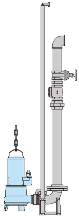 出水管道是直接与耦合装置的出口相联接的,然后通过安装止回阀、截止阀、管道等,最后与市政的污水管道相接通。在联接管道的过程中,每一台水泵的出口都需要安装止回阀和截止阀(污水中使用球形的止回阀比较好)。止回阀和截止阀可以直接安装在集水坑外,如果需要安装在集水坑内,也最好安装在最上面的位置,不要直接安装在水中。